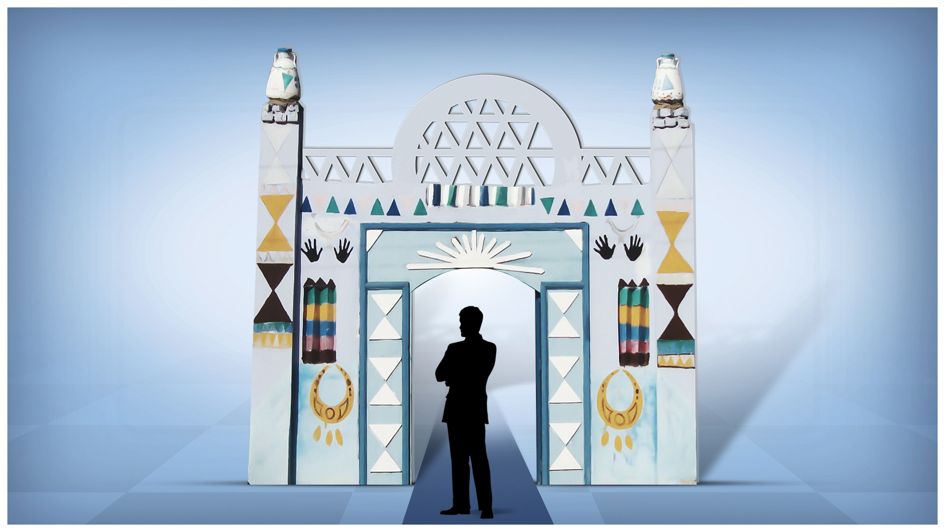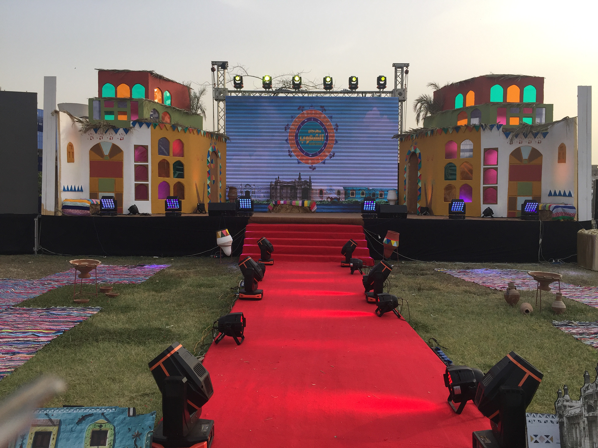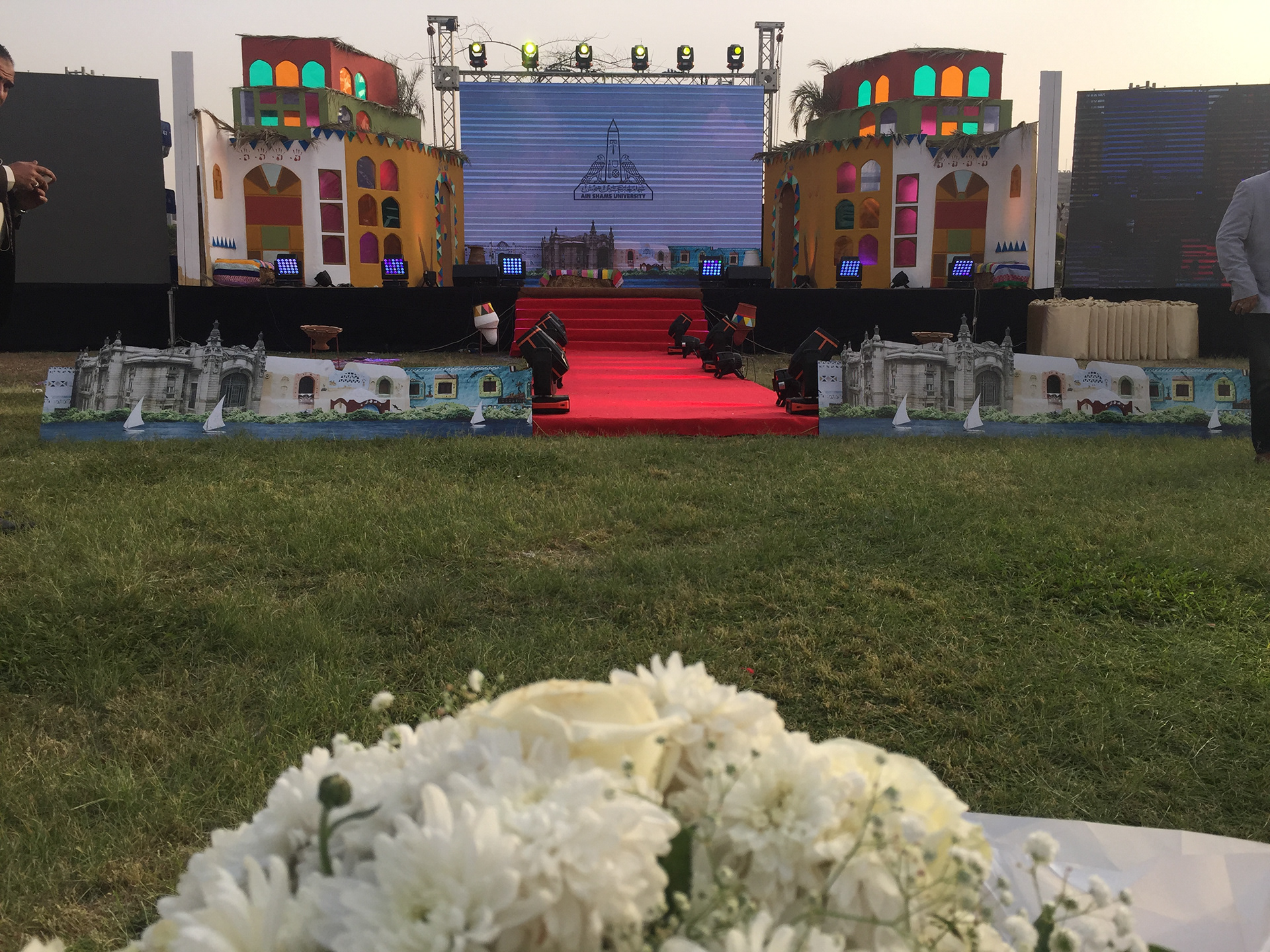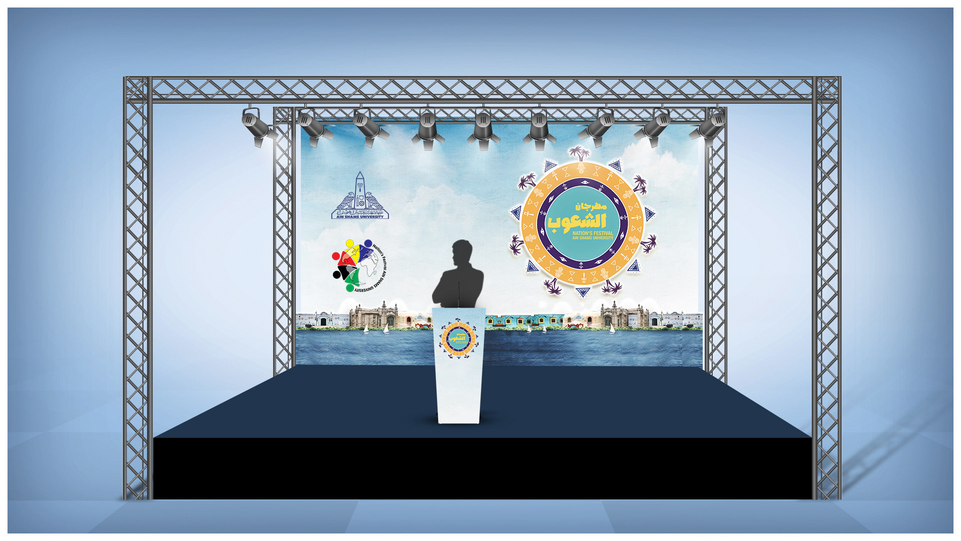 The backdrop and the podium